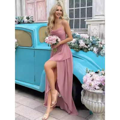 Mysolinna Chiffon Long Pink Evening Dress – Flowing Prom Gown with Soft Layers, Elegant Formalwear for Women