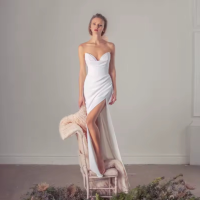 Mysolinna V-Neck Satin Wedding Dress – Sleek Modern Bridal Gown, Elegant Silhouette with Flawless Satin Finish